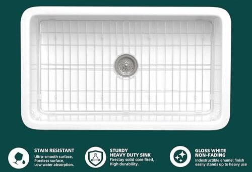 Fireclay is tough, but like all ceramic materials, avoid slamming cast iron into it. Use the included accessories to protect the base if provided. Cleaning is easy. Most stains rinse off with mild soap and water. Avoid harsh abrasives. The glossy white pops in bright kitchens. Measure your cabinet carefully, as fireclay sinks can be heavy and need strong support. If you want a step up in style without losing everyday function, this model delivers.