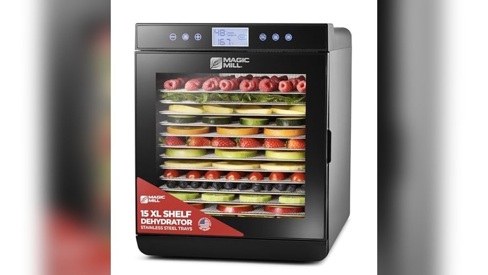 - Includes 15 extra-large stainless steel trays for drying large batches at once