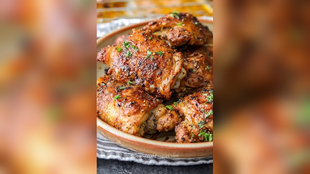 Skin-on thighs give a crispy and golden crust. The skin locks in moisture, making the meat tender. Removing the skin makes the thighs healthier but less crispy. For the best crunch, keep the skin on while baking.