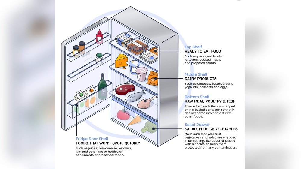Divide your fridge into zones for different foods. Use the top shelves for ready-to-eat items like leftovers and drinks. Keep fruits and vegetables in the crisper drawers to maintain freshness. The bottom shelves suit raw meat and fish, as it is cooler there. This system keeps foods safe and prevents flavors from mixing.